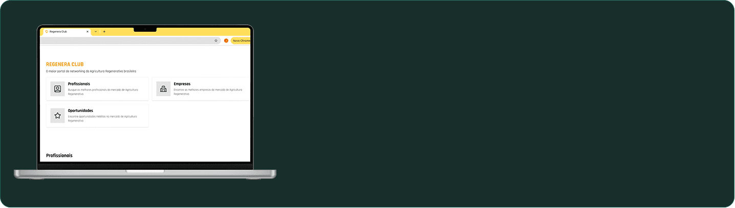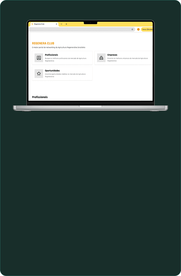 Portal inédito para conhecer e se conectar com os melhores profissionais, empresas e oportunidades do mercado de Agricultura Regenerativa Tropical.